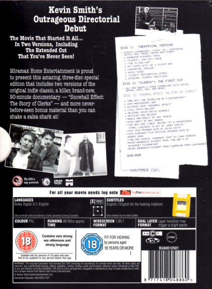 Convenience and video store clerks Dante and Randal are sharp-witted, potty-mouthed … and bored out of their minds. So in between needling customers, the counter jockeys play hockey on the roof, visit a funeral home and deal with their love lives.