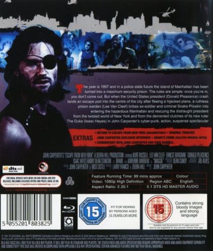In 1997, the island of Mahattan has been walled off and turned into a giant maximum security prison within which the country's worst criminals are left to form their own anarchic society. However, when the President of the United States crash lands on the island, the authorities turn to a former soldier and current convict, Snake Plissken, to rescue him.