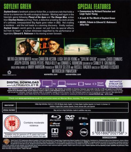 In the year 2022, overcrowding, pollution, and resource depletion have reduced society’s leaders to finding food for the teeming masses. The answer is Soylent Green.