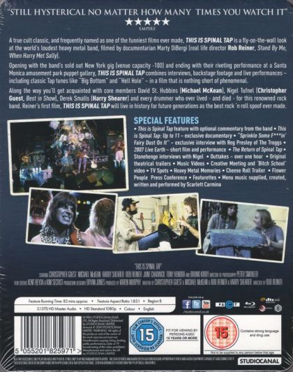 This Is Spinal Tap is a 1984 mock rockumentary directed by Rob Reiner and starring members of the fictional heavy-metal/hard rock band Spinal Tap. The film satirizes the wild personal behavior and musical pretensions of hard-rock and heavy-metal bands, as well as the hagiographic tendencies of rockumentaries of the time.