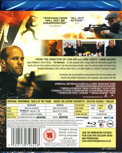 Arthur Bishop (Jason Statham) is a 'mechanic' - an elite assassin with a strict code and unique talent for cleanly eliminating targets. It's a job that requires professional perfection and total detachment, and Bishop is the best in the business. But when he is ordered to take out his mentor and close friend Harry (Donald Sutherland), Bishop is anything but detached.