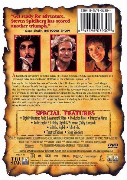 The boy who wasn't supposed to grow up -- Peter Pan -- did just that, becoming a soulless corporate lawyer whose workaholism could cost him his wife and kids, in this family-oriented fantasy from director Steven Spielberg. But a trip to see Granny Wendy in London, where the vengeful Capt. Hook kidnaps Peter's kids and forces Peter to return to Neverland, could lead to a chance at redemption.