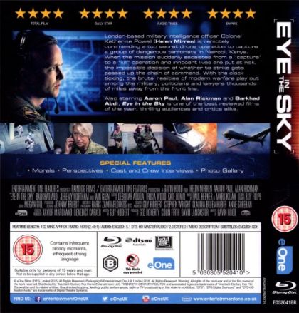 A UK-based military officer in command of a top secret drone operation to capture terrorists in Kenya discovers the targets are planning a suicide bombing and the mission escalates from “capture” to “kill.” As American pilot Steve Watts is about to engage, a nine-year old girl enters the kill zone, triggering an international dispute reaching the highest levels of US and British government over the moral, political, and personal implications of modern warfare.