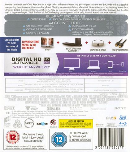 A spacecraft traveling to a distant colony planet and transporting thousands of people has a malfunction in its sleep chambers. As a result, two passengers are awakened 90 years early.