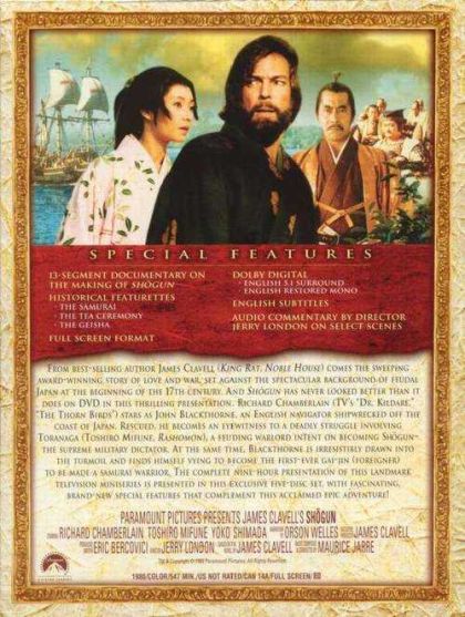 Based on the adventures of English navigator William Adams. The series follows Pilot John Blackthorne's experiences in Japan in the early 1600's. After his ship is wrecked along the coast of Japan, Blackthorne must juggle his identity as an Englishman associated with other Europeans, namely Portuguese traders and Jesuit priests, and the Japanese culture into which he is thrust.