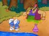 Hefty and Handy, not to mention everyone else, compete for the amourous attention of Smurfette.