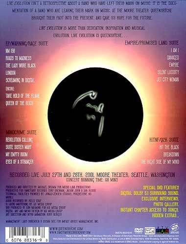 Live Evolution is the title of a 2001 live album and a DVD released by Queensrÿche. It was recorded over two nights (July 27–28, 2001) at the Moore Theatre in Seattle, Washington. On the CD the tracks were collected in suites, which represent different moments of the band production and include a large section of the concept album Operation: Mindcrime. The DVD contains footage shot at the same concerts and features less songs listed in the order they were played during the shows.