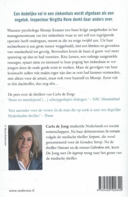 Bovendien levert de baan algauw veel meer spanning op dan ze had voorzien. Rita Jansen, een onlangs aangestelde manager, spaart niets en niemand in haar poging het ziekenhuis te verjongen door de oude garde eruit te werken. Maar de gevolgen van haar kruistocht zullen vele malen erger zijn dan ze ooit had kunnen vermoeden, niet alleen voor de artsen, maar ook voor haarzelf en Mensje. Eerst valt er één slachtoffer, dan nog één