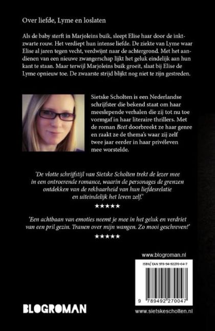 Sietske Scholten is een Nederlandse schrijfster die bekend staat om haar meeslepende verhalen die zij tot nu toe vormgaf in haar literaire thrillers. Met de roman Beet doorbreekt ze haar genre en raakt ze de thema's waar zij zelf twee jaar eerder in haar privéleven mee worstelde.