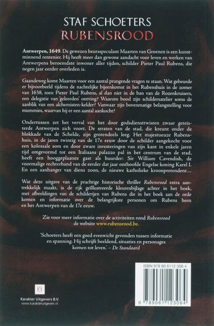Wat deze uitgave van de prachtige historische thriller Rubensrood extra aantrekkelijk maakt, is de rijk geïllustreerde kleurenbijlage achter in het boek, met afbeeldingen van de schilderijen van Rubens die in het boek aan de orde komen en informatie over de belangrijkste personen om Rubens heen en het Antwerpen van de 17e eeuw.