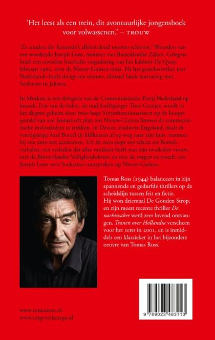 `Ze zouden die Kennedy s allebei dood moeten schieten. Woorden van een woedende Joseph Luns, minister van Buitenlandse Zaken. Gelegenheid: een zoveelste hectische vergadering van het kabinet-De Quay,februari 1962, over de Nieuw-Guinea-crisis. Na het gezichtsverlies met Nederlands-Indië dreigt een nieuwe, ditmaal fatale aanvaring met Soekarno in Jakarta. In Moskou is een delegatie van de Communistische Partij Nederland op bezoek. Een van de leden, de oud-Indiëganger Theo Geutjes, wordt in het diepste geheim door twee hoge Sovjetfunctionarissen op de hoogte gesteld van een fantastisch plan om Nieuw-Guinea binnen de communistische invloedssfeer te trekken. In Devon, zuidwest-Engeland, daalt de veertigjarige Axel Boreel de klifkusten af op weg naar zijn huis, wanneer hij een auto ziet aankomen. Uit de auto stapt een schim uit Boreels verleden, een verleden dat alles vandoen heeft met zijn overleden vrouw, met de Binnenlandse Veiligheidsdienst en met de zorgen en woede van Joseph Luns over Soekarno s aanspraken op Nieuw-Guinea.