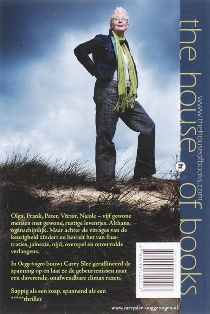 Heb jij iets gezien? Olga, Frank, Peter, Victor, Nicole - vijf gewone mensen met gewone, rustige leventjes. Althans, ogenschijnlijk. Maar achter de vitrages van de keurigheid zindert en borrelt het van de frustraties, jaloezie, nijd, overspel en onvervulde verlangens. Frank zet het makelaarskantoor van hem en zijn brave compagnon Huib op het spel door met buurtgenoot Victor een smerig zakelijk een-tweetje aan te gaan. Victor is een patser die zijn hand niet omdraait voor onfrisse zaakjes, net zoals hij het niet zo nauw neemt met de huwelijkstrouw. Victors zoon Lars lijkt pa's amorele geaardheid met de paplepel ingegoten te hebben gekregen, en daar wordt zijn klasgenoot Ruben, de zoon van Olga en Frank, op een verschrikkelijke manier het slachtoffer van. Tot schade en schande van Peter, de schoolconciërge die op de hoogte is van de terreur die Lars en zijn vrienden op Ruben uitoefenen, maar die niet in staat lijkt er iets aan te doen. Geraffineerd bouwt Slee de spanningen op en laat ze de gebeurtenissen naar een daverende, onafwendbare climax razen. In Ooggetuigen heeft Carry Slee op flitsende wijze ingrediënten van verschillende genres gecombineerd: de sappige intriges van een soap, de suspense van een thriller en de diepgang van een psychologische roman. Voeg daar een snelle cameravoering aan toe in de vorm van steeds een ander personage dat vertelt, en je hebt een boek dat je urenlang genadeloos gegijzeld houdt. NBD|Biblion recensie De levens van verschillende mensen kruisen elkaar op enigerlei manier. Frank is makelaar en het gaat niet goed met het bedrijf. Zijn zoon Ruben wordt op school gepest. Concierge Peter is daarvan getuige, maar om de een of andere reden neemt hij geen actie. Verder is er nog Nicole, wier dochter een tijd geleden een ernstig ongeluk heeft gehad, terwijl de bestuurder is doorgereden. Gefrustreerd in haar huwelijk en door zorgen om haar dochter zoekt Nicole haar heil in alcohol en buitenechtelijke relaties. Terwijl Frank via een arrogante zakenman probeert enkele dure huizen te verkopen, loopt het pesten van zijn zoon gruwelijk uit de hand. Deze bijzonder spannende en levensechte roman gaat over mensen die de consequenties van hun daden niet onder ogen durven zien met als gevolg frustraties, jaloezie en overspel. Ze raken steeds verder in de problemen tot er een onafwendbare climax plaats vindt. Elke hoofdstuk wordt verteld vanuit het oogpunt van een van de hoofdpersonen. Een spannend verhaal, levensecht, dat leest als een trein. De auteur is een veelgelauwerd schrijfster van voornamelijk jongerenromans.
