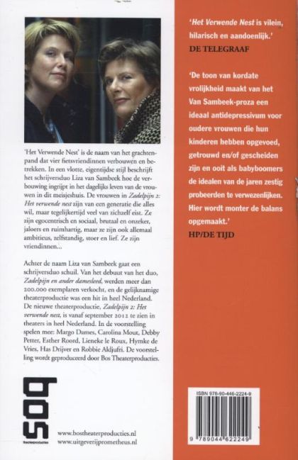 Van het debuut van het duo, Zadelpijn en ander damesleed, werden meer dan 200.000 exemplaren verkocht, en de gelijknamige theaterproductie was een theaterhit in heel Nederland. De nieuwe theaterproductie, Zadelpijn 2: Het verwende nest, is vanaf september 2012 te zien in theaters in heel Nederland. In de voorstelling spelen mee: Margo Dames, Carolina Mout, Debby Petter, Esther Roord, Lieneke le Roux, Hymke de Vries, Has Drijver en Robbie Aldjufri. De voorstelling wordt geproduceerd door Bos Theaterproducties.