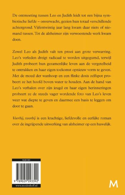 Een bijzondere roman over afscheid nemen, vol compassie geschreven, die de lezer diep zal raken. Steeds meer mensen komen eens in hun leven in aanraking met dementie of alzheimer, vaak met verwoestende gevolgen De ontmoeting tussen Leo en Judith leidt tot een bijna symbiotische liefde - onverwacht, gezien hun totaal verschillende achtergrond. Vijfentwintig jaar lang kwam daar niets of niemand tussen. Tot de alzheimer zijn verwoestende werk kwam doen. Zowel Leo als Judith valt ten prooi aan grote verwarring. Leo's verleden dreigt radicaal te worden uitgegumd, terwijl Judith probeert hun gezamenlijke leven aan de vergetelheid te ontrukken en haar eigen toekomst opnieuw vorm te geven. Met de moed der wanhoop en een flinke dosis zelfspot probeert ze het hoofd boven water te houden. Aan de hand van Leo's verhalen over zijn jeugd en haar eigen herinneringen probeert ze de steeds vager wordende foto van Leo's leven weer wat diepte te geven en daarmee een basis te leggen om door te gaan.