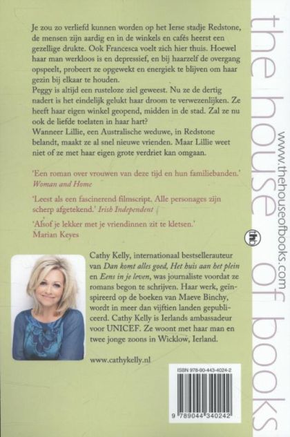 Je zou zo verliefd kunnen worden op het Ierse stadje Redstone, de mensen zijn aardig en in de winkels en cafés heerst een gezellige drukte. Ook Francesca voelt zich hier thuis. Hoewel haar man werkloos is en depressief, en bij haarzelf de overgang opspeelt, probeert ze opgewekt en energiek te blijven om haar gezin bij elkaar te houden. Peggy is altijd een rusteloze ziel geweest. Nu ze de dertig nadert is het eindelijk gelukt haar droom te verwezenlijken. Ze heeft haar eigen winkel geopend, midden in de stad. Zal ze nu ook de liefde toelaten in haar hart? Wanneer Lillie, een Australische weduwe, in Redstone belandt, maakt ze al snel nieuwe vrienden. Maar Lillie kan niet met haar eigen grote verdriet omgaan.