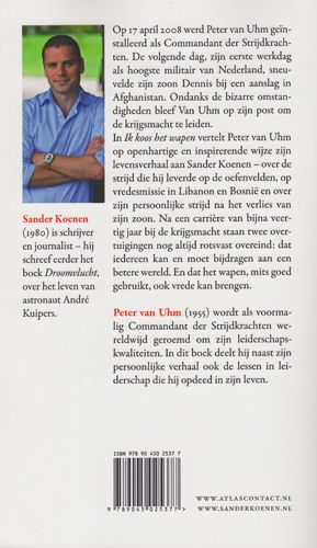 Op 17 april 2008 werd Peter van Uhm geïnstalleerd als commandant der strijdkrachten. De volgende dag, zijn eerste werkdag als hoogste militair van Nederland, sneuvelde zijn zoon Dennis bij een aanslag in Afghanistan. Ondanks de bizarre omstandigheden bleef Van Uhm op zijn post om de krijgsmacht te leiden. Zo begint Ik koos het wapen. Peter van Uhm vertelt op openhartige en inspirerende wijze zijn levensverhaal over de strijd die hij leverde op de oefenvelden, op vredesmissie in Libanon en Bosnië en over zijn persoonlijke strijd na het verlies van zijn zoon. Na een carrière van bijna veertig jaar bij de krijgsmacht staat één overtuiging nog altijd rotsvast overeind: dat iedereen kan en moet bijdragen aan een betere wereld. En dat het wapen, mits goed gebruikt, ook vrede kan brengen.