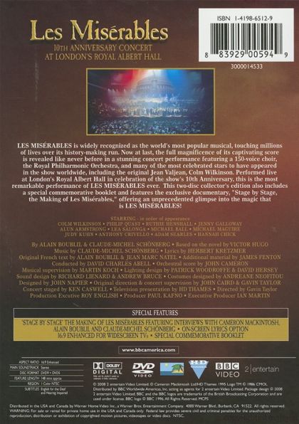 | Extras | Stage By Stage, Making Of Les Miserables Featuring Interviews With Cameron Machintosh, Alain Boublil |