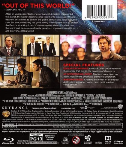 After an unprecedented series of natural disasters threatened the planet, the world's leaders came together to create an intricate network of satellites to control the global climate and keep everyone safe. But now, something has gone wrong: the system built to protect Earth is attacking it, and it becomes a race against the clock to uncover the real threat before a worldwide geostorm wipes out everything and everyone along with it.
