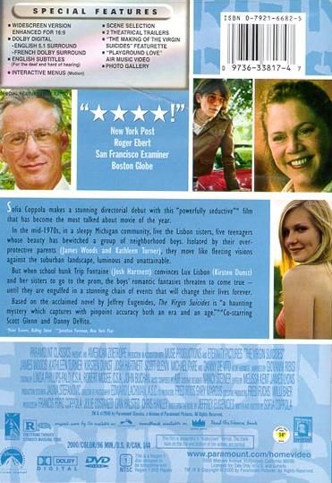 | Extras | Interactive Menus Scene Selection 2 Theatrical Trailers "The Making Of The Virgin Suicides" Featuret |