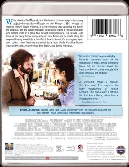 A Russian circus visits the US. A clown wants to defect, but doesn't have the nerve. His saxophone playing friend however comes to the decision to defect in the middle of Bloomingdales. He is befriended by the black security guard and falls in love with the Italian immigrant from behind the perfume counter. We follow his life as he works his way through the American dream and tries to find work as a musician.