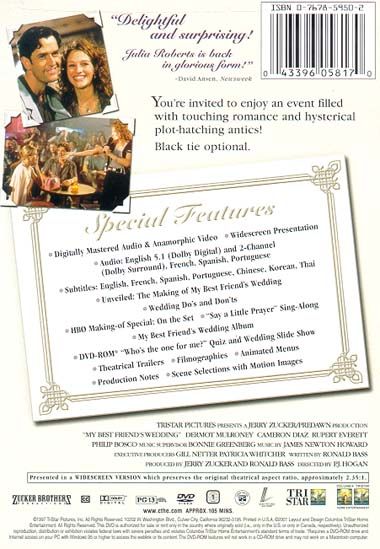 | Extras | Unveiled: The Making Of My Best Friend's Wedding Wedding Do's and Don'ts HBO Making-Of Special: On T |