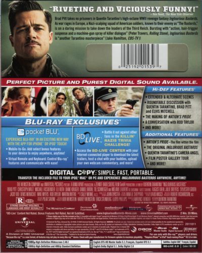 | Extras | Extended & Alternate Scenes Roundtable Discussion with Quentin Tarantino, Brad Pitt and Elvis Mitche |