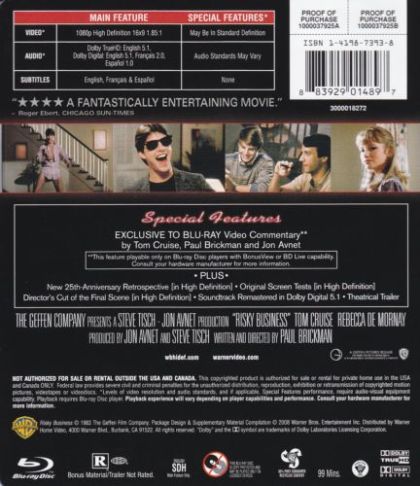 | Extras | Video commentary with director Paul Brickman, producer Jon Avnet and Tom Cruise New 25th Anniversary |
