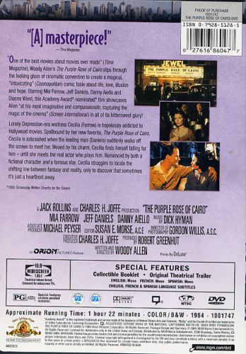 Cecilia is a waitress in New Jersey, living a dreary life during the Great Depression. Her only escape from her mundane reality is the movie theatre. After losing her job, Cecilia goes to see 'The Purple Rose of Cairo' in hopes of raising her spirits, where she watches dashing archaeologist Tom Baxter time and again.