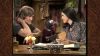 Kermit pushes an unwilling Floyd Pepper to take on the role of a knight in a jousting scene with Gonzo as the Black Knight.