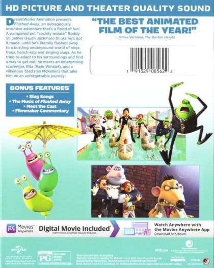 London high-society mouse, Roddy is flushed down the toilet by Sid, a common sewer rat. Hang on for a madcap adventure deep in the sewer bowels of Ratropolis, where Roddy meets the resourceful Rita, the rodent-hating Toad and his faithful thugs, Spike and Whitey.