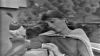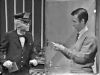 Rogers and Mr. McFeely take care of two ducks on the porch before seeing the Vagabond Marionettes' production of Rumpelstiltskin.