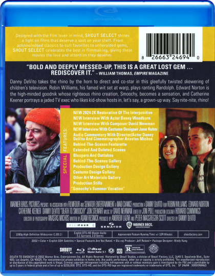 Tells the story of Rainbow Randolph, the corrupt, costumed star of a popular children's TV show, who is fired over a bribery scandal and replaced by squeaky-clean Smoochy, a puffy fuchsia rhinoceros. As Smoochy catapults to fame - scoring hit ratings and the affections of a network executive - Randolph makes the unsuspecting rhino the target of his numerous outrageous attempts to exact revenge and reclaim his status as America's sweetheart.