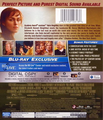 A story of love and life among the landed English gentry during the Georgian era. Mr. Bennet is a gentleman living in Hertfordshire with his overbearing wife and five daughters, but if he dies their house will be inherited by a distant cousin whom they have never met, so the family's future happiness and security is dependent on the daughters making good marriages.