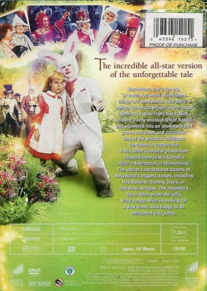 Classic tale of a girl named Alice who follows a white rabbit down a hole into Wonderland, where she can change sizes by eating and drinking and animals talk. After escaping the disturbing Queen of Hearts, she finds that she has ended up on the other side of the looking glass in Looking Glass Land and a Jabberwocky after her.