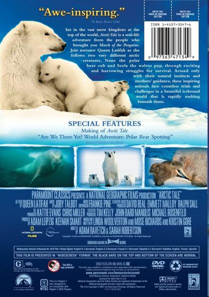 Arctic Tale is a 2007 documentary film from the National Geographic Society about the life cycle of a walrus and her calf, and a polar bear and her cubs, in a similar vein to the 2005 hit production March of the Penguins, also from National Geographic.