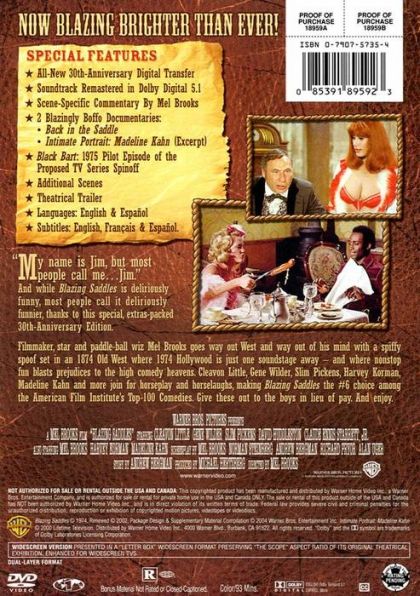 | Extras | Scene Specific Commentary by Mel Brooks 2 Blazingly Boffo Documentaries: · Back in the Saddle · |