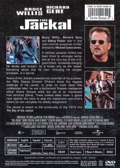 | Extras | Commentary with the Director Original Featurette: The Making of the Jackal Interviews with the Cast |