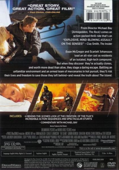 In 2019, Lincoln Six-Echo is a resident of a seemingly "Utopian" but contained facility. Like all of the inhabitants of this carefully-controlled environment, Lincoln hopes to be chosen to go to The Island — reportedly the last uncontaminated location on the planet. But Lincoln soon discovers that everything about his existence is a lie.