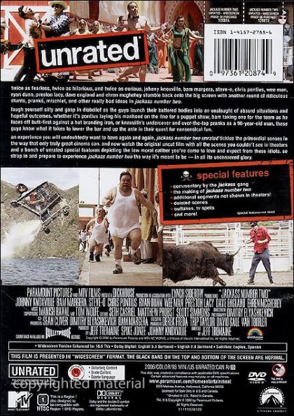 | Extras | Commentary by the Jackass The making of Jackass Number Two Additional Segments not shown in theaters |