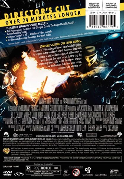 | Extras | The Phenomenon: The Comic that Changed Comics Watchmen: Video Journals My Chemical Romance Desolatio |