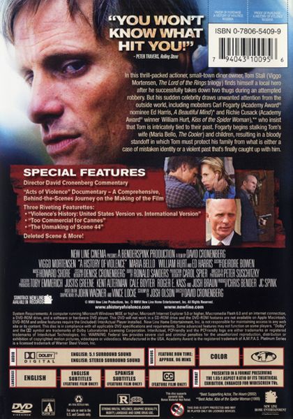| Extras | Director David Cronenberg Commentary Deleted scene with Director Commentary Acts of Violence Documen |