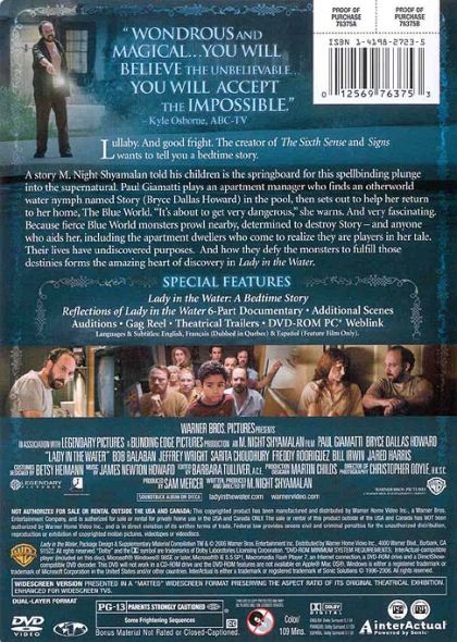 | Extras | · Lady in the Water: A Bedtime Story · Reflections of the Lady in the Water 6-Part Documentary · Add |