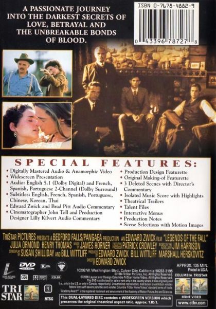 | Extras | Edward Zwick and Brad Pitt Audio Commentary Cinematographer John Toll and Production Designer Lilly |