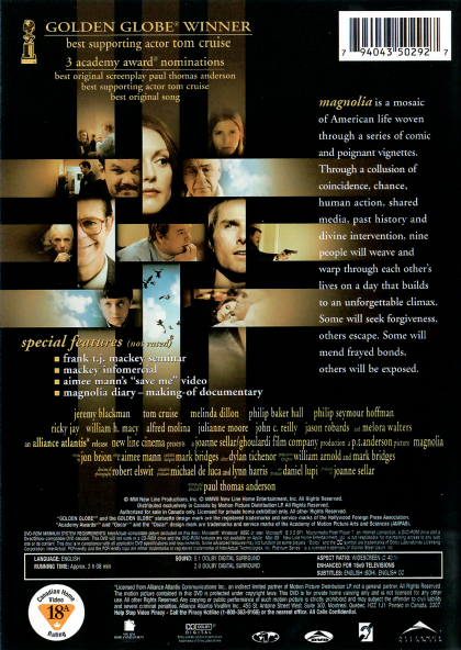 | Extras | Frank T.J. Mackey Seminar Mackey Infomercial Teaser Trailer TV Spots "Save Me" Video "Magnolia Diary |