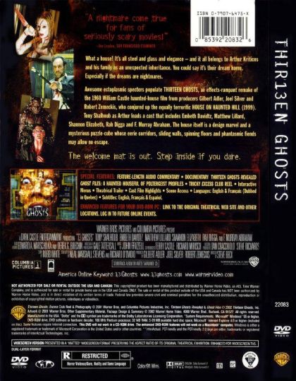 | Extras | Feature-Length Audio Commentary Documentary Thirteen Ghosts Revealed Ghost Files: A Haunted Houseful |