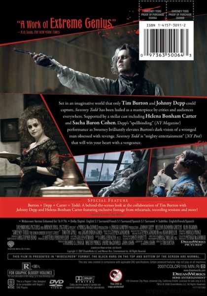 | Extras | Burton Depp Carter = Todd: A behind-the-scenes look at the collaboration of Tim Burton with Johnny D |