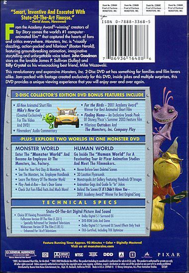 | Extras | THX-Certified All-New Animated Short Film Mike's New Car Filmmakers' Audio Commentary For The Birds: |