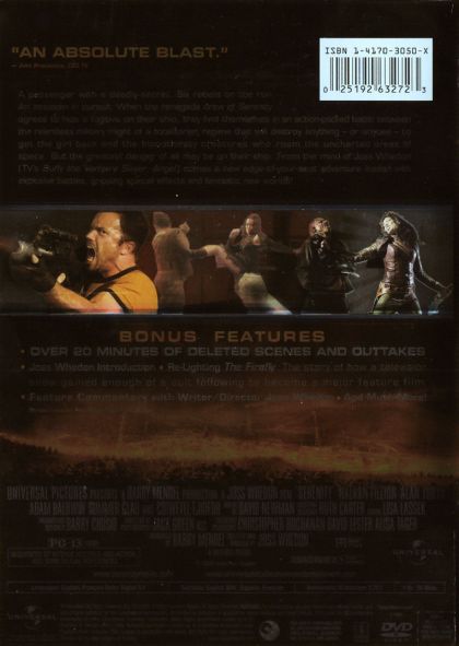 | Extras | Over 20 minutes of Deleted Scenes & Outtakes Joss Whedon Introduction Relighting The Firefly: The st |