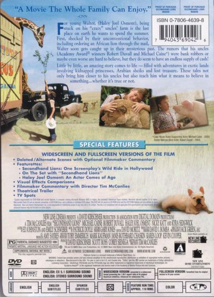 | Extras | Deleted/ Alternate Scenes with Optional Filmmaker Commentary Featurettes: Secondhand Lions: One Scre |