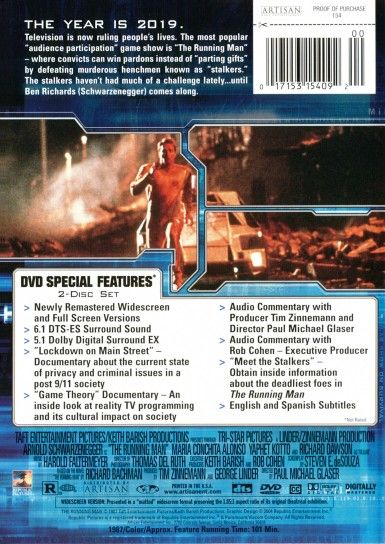 By 2017, the global economy has collapsed and American society has become a totalitarian police state, censoring all cultural activity. The government pacifies the populace by broadcasting a number of game shows in which convicted criminals fight for their lives, including the gladiator-style The Running Man, hosted by the ruthless Damon Killian, where “runners” attempt to evade “stalkers” and certain death for a chance to be pardoned and set free.